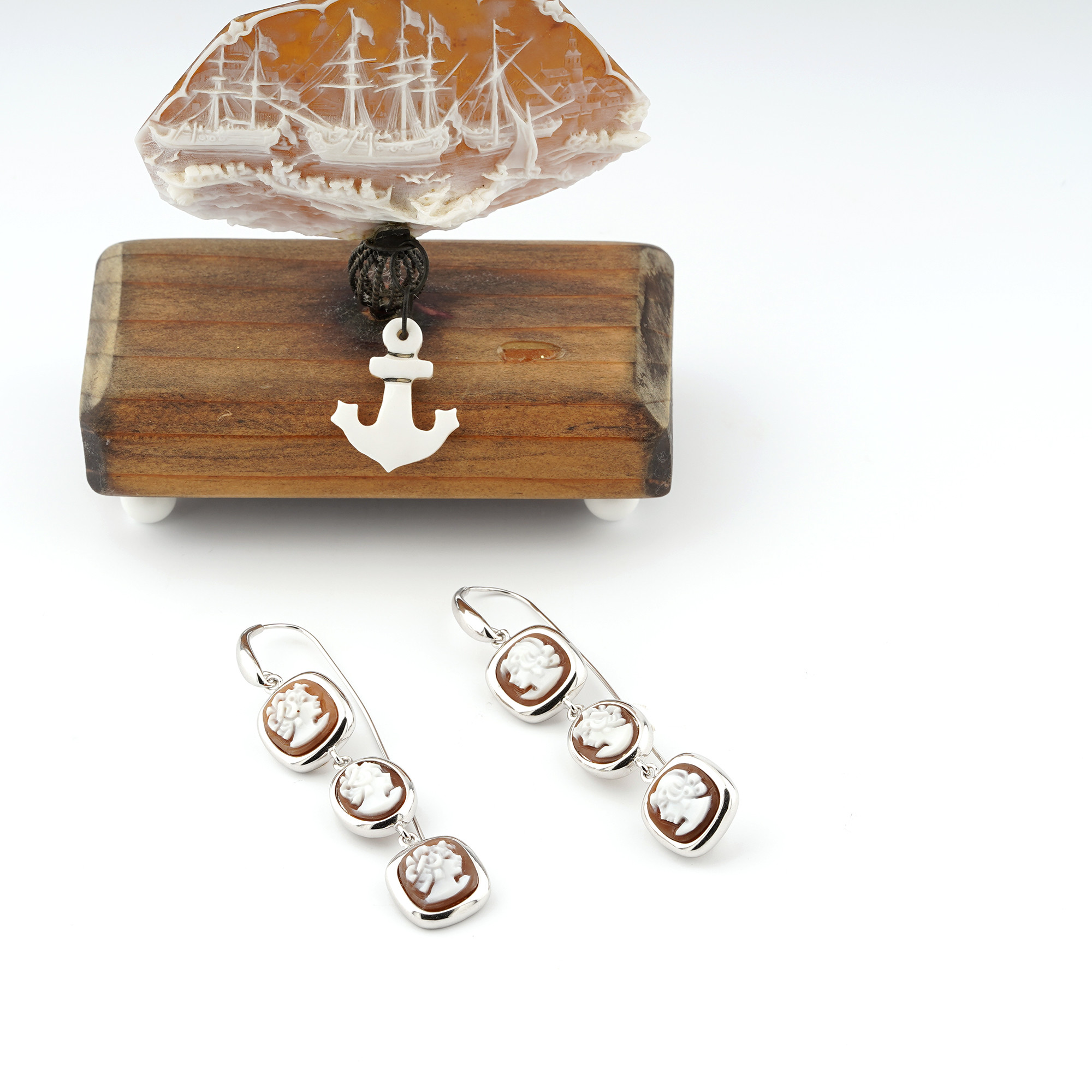 con cameo inciso a mano su e argento 925. Dimensione del cameo 10-11 mm.