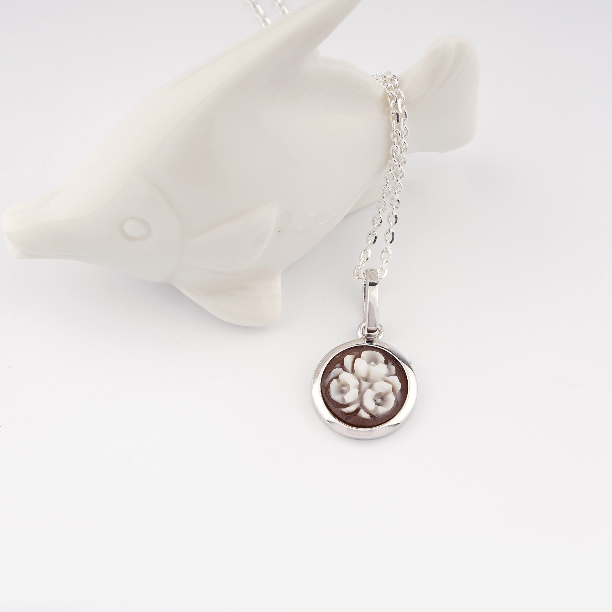 con cameo inciso a mano su e argento 925. Dimensione del cameo 10 mm.